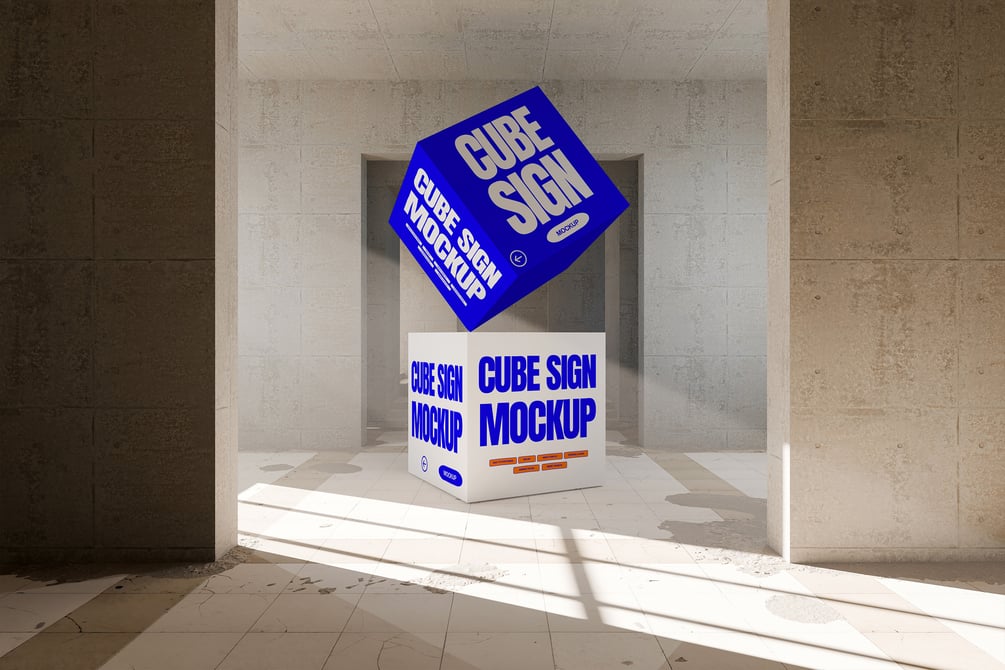 Title: Cube Sign Mockup with Bold Typography
